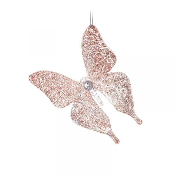 Vytvorte si kúzelnú atmosféru s našim závesným motýľom. Tieto výnimočné dekorácie v jemnom medenom odtieni majú priesvitné telo zdobené jemnými trblietkami. Veľkosť motýľa je 12 cm, čo ho robí dostatočne výraznou a zároveň jemnou vianočnou dekoráciou. Dekorácia je vybavená šnúrkou na jednoduché zavesenie, takže iju môžete umiestniť kamkoľvek chcete. Doprajte svojmu domovu dotyk elegancie a vytvorte si vlastný vianočný príbeh s týmito nádhernými dekoráciami.