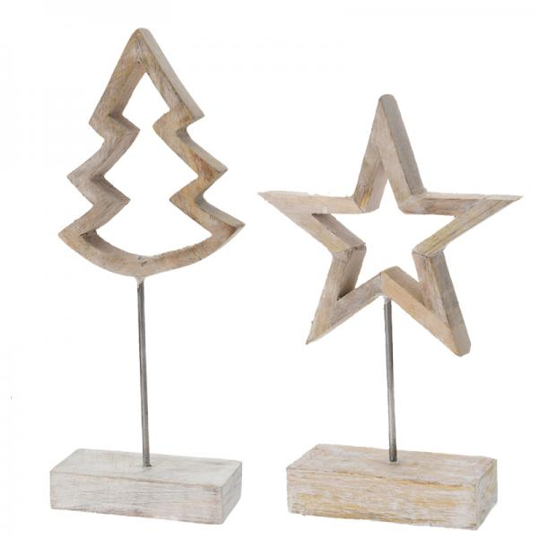 Vianočný stromček má veľkosť 10 x 5 x 24,5 cm, zatiaľ čo vianočná hviezda je o niečo väčšia a má veľkosť 14 x 5 x 22 cm. Oba motívy majú prírodnú bielu farbu morenia, čo im dodáva rustikálny a elegantný vzhľad, ktorý sa hodí do rôznych vianočných výzdob a štýlov. Vytvorte si s nimi jedinečnú vianočnú atmosféru a nechajte ich zdobiť aj Váš domov s útulnosťou a šarmom dreva.