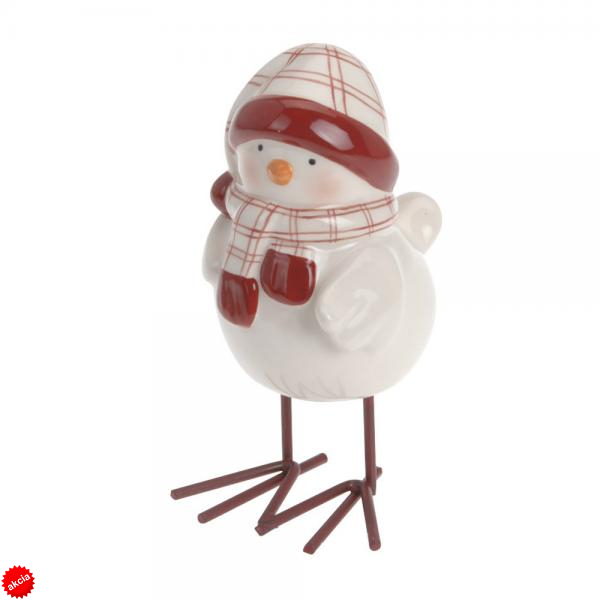Potešte sa červeno-bielym keramickým vtáčikom so šálom a čiapkou, ktorý je umiestnený na pevných kovových nožičkách. Veľkosť tejto dekorácie je 7,5x5,9x12 cm, čo ju robí dostatočne výraznou na umiestnenie v rámci akejkoľvek vianočnej výzdoby alebo aranžmánu. Tento vtáčik je vyrobený z keramiky, má ručne maľované detaily ako šál a čiapku, kvalitnú lesklú glazúru, čo dodáva elegantný vzhľad celej dekorácii.