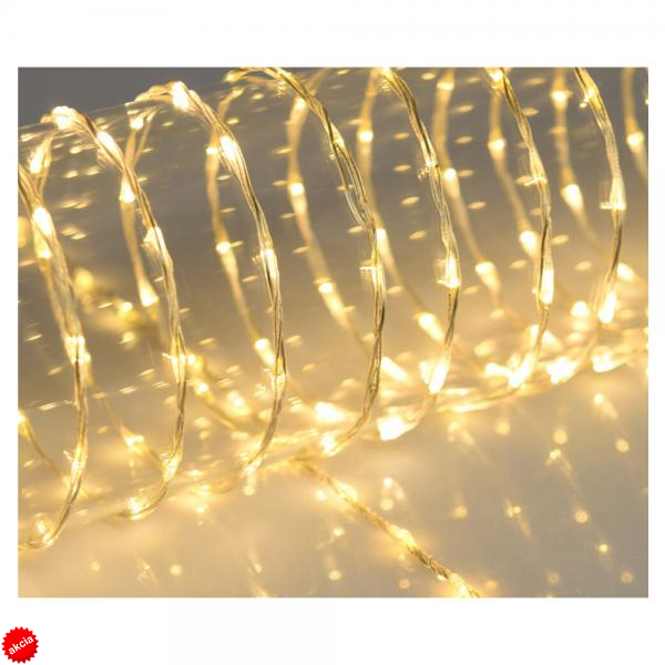 Vysoko úsporná LED svetelná reťaz je vhodná pre exteriérové a interiérové použitie. Reťaz disponuje priesvitným káblom, bezpečnou izoláciou a vynikajúcou energetickou účinnosťou. Poskytuje výraznú svietivosť a má dlhú životnosť žiaroviek. Dlhšia, 15m dlhá reťaz má aj adaptér na prepínanie 8 svetelných efektov. V balení nájdete svetelnú reťaz s príjemným teplým svetlom. Súčasťou balenia je prívodný kábel a transformátor. Reťaz je napájaná na 220-240V.