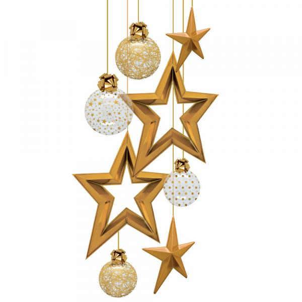 Skupina 8 rôznych nadrozmerných bielo - zlatých vianočných ozdôb. V skupine sú namixované nadrozmerné gule a hviezdy v prijemných sviatočných odtieňoch bielej a zlatej farby. Veľkosť dekorácie v rozloženom stave je 120 x 220 cm.