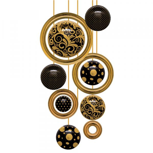 Skupina 11 rôznych nadrozmerných čierno - zlatých vianočných ozdôb. V skupine sú namixované nadrozmerné gule rôznych priemerov v elegantných odtieňoch čiernej a zlatej farby. Veľkosť dekorácie v rozloženom stave je 120 x 240 cm.