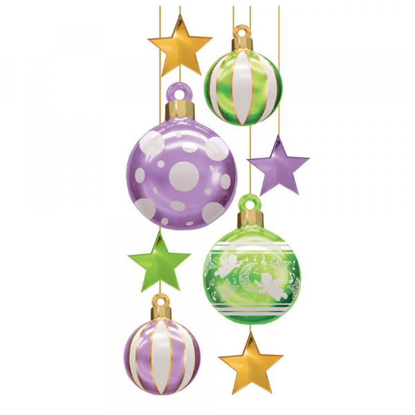 Skupina 8 rôznych nadrozmerných vianočných ozdôb v moderných pastelových odtieňoch. V skupine sú namixované nadrozmerné gule a hviezdičky rôznych priemerov vo veselých pastelových farbách. Veľkosť dekorácie v rozloženom stave je 130 x 250 cm.