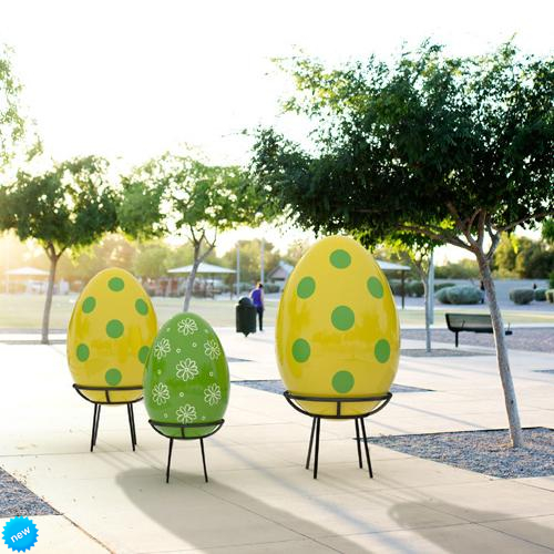 Nadrozmerné dekoračné vajíčka CITY EGGS sú vhodné do interiéru alebo exteriéru. Nádherne vyniknú, sú farebne pútavé a odolné voči premenlivému počasiu. Vytvorte si vlastný motív vajíčka alebo si vyberte zo širokej palety našich motívov. Všetky motívy sú ručne maľované a vajíčka sú vyrobené z odolného laminátu. Výška vajíčok je možná až do výšky 250 cm. Každé vajíčko je dodávané s pevným kovovým stojanom. Výška pevného kovového stojanu je od 20 cm do 50 cm, primerane veľkosti samotného vajíčka.