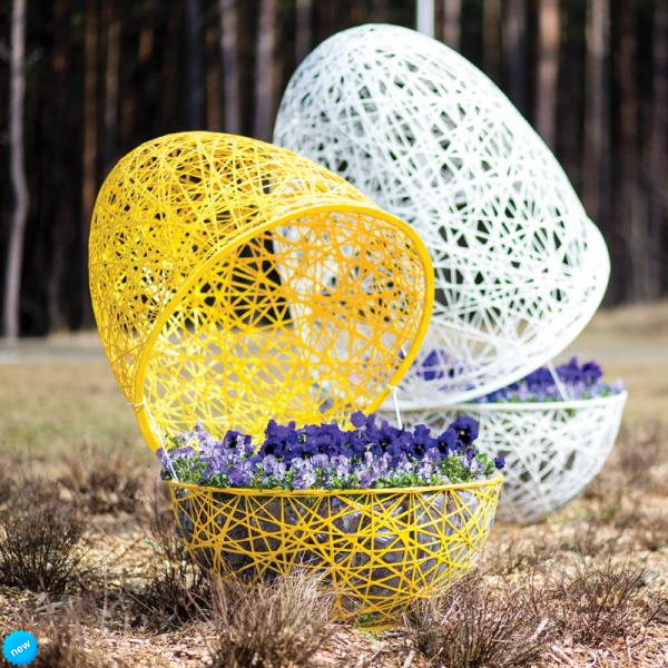 Nadrozmerné prútené vajíčka sú vyrobené z odolného sklolaminátu, vďaka čomu vajíčka vydržia premenlivé jarné počasie. Vajíčka možno použiť samostatne alebo vo väčších kompozíciách, vajíčka môžu byť zatvorené alebo otvorené, oddelene ako škrupinky a je možné použiť ich aj ako črepníky na kvetiny. K dispozícii sú vajíčka v rôznych farbách a veľkostiach, vhodné sú do exteriéru alebo interiéru. Použité materiály sú odolné voči akýmkoľvek poveternostným podmienkam a UV žiareniu.