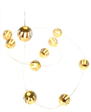 Svetelná reťaz na batérie s 10 mini LED svetielkami a elegantnými zlatými guľôčkami je ideálnym spôsobom, ako pridať do priestoru jemnú a pohodlnú atmosféru. Táto reťaz je dostupná v troch rôznych motívoch namaľovaných na guľôčkach: pásiky, bodky alebo kocky. Tieto vzory dodávajú reťazi osobitý štýl a jemne presvetľujú priestor. Bez ohľadu na to, či ich použijete na vianočnú výzdobu, osvetlenie interiéru alebo na vytvorenie útulnej nálady, táto reťaz prinesie potrebný šmrnc a jemný lesk do každého prostredia.