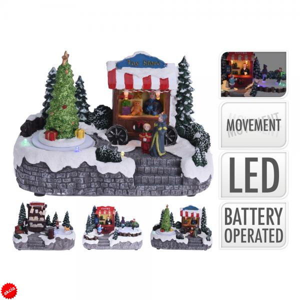 Vytvorte si sviatočnú atmosféru s milým vianočným mestečkom v ktorom nájdete farebný domček, pohyblivé figúrky a LED svetlá. Táto milá dekorácia je dostupná v troch rôznych motívoch s rôznymi scenériami a typmi obchodíkov: hračkárstvo, novinový stánok alebo kaviareň. Celkové rozmery dekorácie sú 18,5 x 10,5 x 13 cm, čo z neho robí ideálny doplnok pre nenáročnú a rýchlu výzdobu v domácnosti či kancelárii.