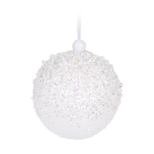 Táto očarujúca vianočná guľa je dokonalým doplnkom pre vianočný stromček. Je vyrobená v elegantnej snehovo bielej farbe, ktorá sa krásne leskne v svetle. Povrch gule je ozdobený jemnými korálkami a trblietkami, ktoré pridávajú extra lesk a magický nádych.