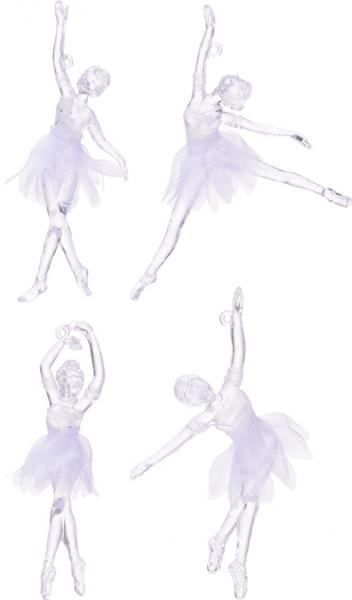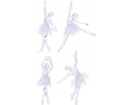Predstavujeme nádhernú ľadovú závesnú dekoráciu vo forme tancujúcich balerín v 4 rôznych tvaroch. Tieto jemné a elegantné figuríny sú vyrobené z priesvitného materiálu, ktorý je oživený drobnými striebornými trblietkami a dozdobený milou saténovou sukničkou.