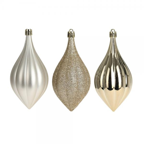V každom balení je guľa v lesklom prevedení, v matnom prevedení a v trblietkovom prevedení. Lesklá guľa pridáva výzdobe potrebný lesk, matná guľa ju zjemňuje a trblietková guľa umožňuje krásne záblesky vianočného osvetlenia na vianočnom stromčeku.