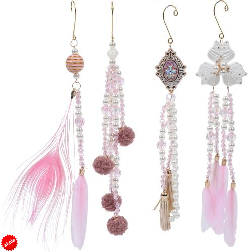 Potešte svoje zmysly okúzľujúcou závesnou dekoráciou v nežnej baby ružovej farbe. Závesná dekorácia má dĺžku 28 cm, čo ju robí dostatočne výrazným prvkom v rámci akejkoľvek vianočnej výzdoby. Dekorácia JUWEL je zladená do dokonalosti za pomoci použitia rôznych korálok, sklíčok a pierok, ktoré sa pretínajú a vytvárajú unikátny a pôsobivý vzhľad.