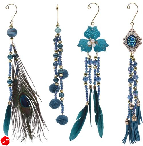 Potešte svoje zmysly okúzľujúcou závesnou dekoráciou v rafinovanej smaragdovo modrej farbe. Závesná dekorácia má dĺžku 28 cm, čo ju robí dostatočne výrazným prvkom v rámci akejkoľvek vianočnej výzdoby. Dekorácia JUWEL je zladená do dokonalosti za pomoci použitia rôznych korálok, sklíčok a pierok, ktoré sa pretínajú a vytvárajú unikátny a pôsobivý vzhľad.