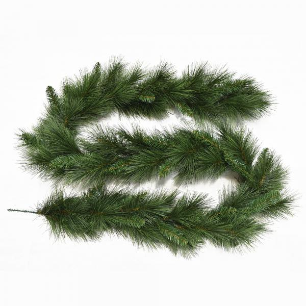 Predstavujeme krásne hustú čačinovú girlandu so zaujímavým dlhým borovicovým ihličím typu LONGNEEDLE. Na girlande sa kombinujú 2 druhy vetvičiek - vetvičky s dlhším a bohatším borovicovým ihličím a vetvičky s kratším ihličím v okrúhlom tvare. Touto kombináciou sa dosiahol jedinečný tvar, extra hustota a pôsobivý vzhľad celej kolekcie vianočných stromčekov, vencov a girlánd LONGNEEDLE.