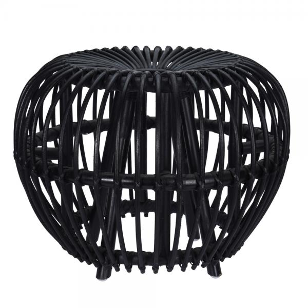 Štýlová ručne vypletaná taburetka z trvácneho prírodného ratanu, ktorú možno použiť aj ako praktický príručný stolík pre použitie v interiéri alebo na akejkoľvek krytej zimnej záhrade alebo terase. Taburetka má ladný okrúhly tvar, vďaka čomu pristane každému priestoru. Čierna farba.