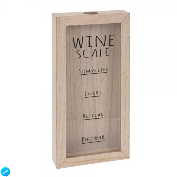 Drevená vitrína alebo zásobník na použité korkové zátky je vtipným doplnkom pre každého milovníka vína, ktorý si nie je istý primeranosťou svojej bežnej spotreby vína. Zistite ako na tom ste podľa stupnice vo vitríne a podľa počtu korkových zátok zistíte, či ste len vínový začiatočník, bežný konzument, expert alebo skutočný vínový someliér. Vitrína s dreveným rámom a čelnou sklenenou tabuľou s textovou potlačou.