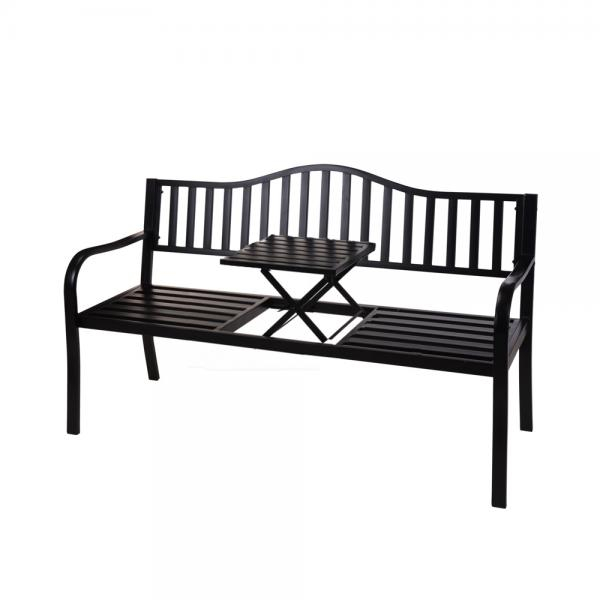 Naspäť / Záhradná kovová lavica s výsuvným stolíkom