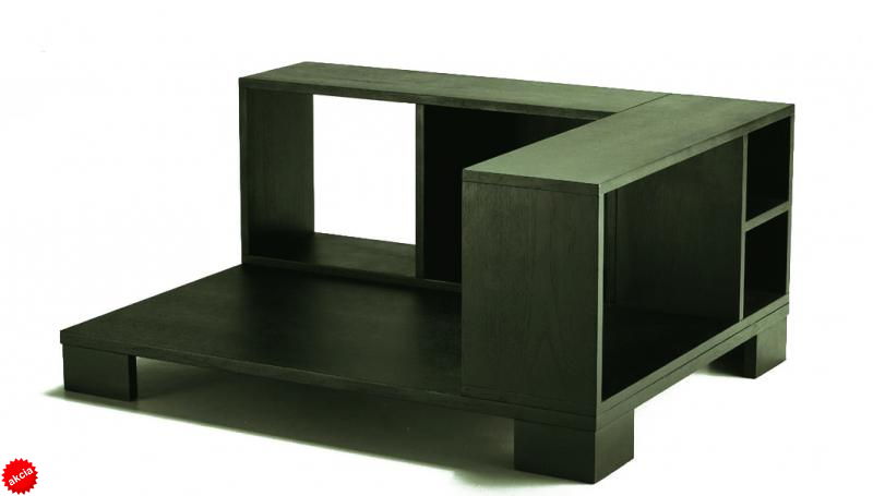 Drevený rohový policový diel určený na predelenie rohoviek, prepojenie solitérov alebo ako samostatný interiérový prvok.