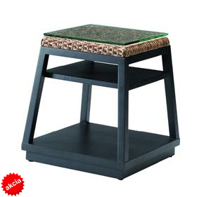 Dômyselná kombinácia dreveného masívu, skla a výpletu z vodného hyacintu prenesená do najnovšieho modelu príručného stolíka HET 19 .