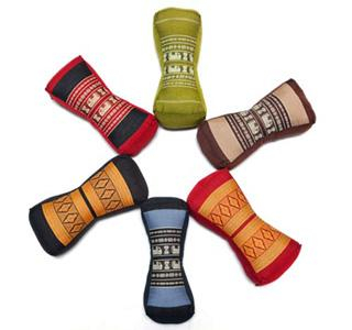 Anatomický tvarovaný thajský relaxačný vankúšik , špeciálne určený na uvoľnenie stuhnutej šije, krku a pliec. K dispozícii sú vankúše so vzormi slonov alebo s batikovaným vzorom.